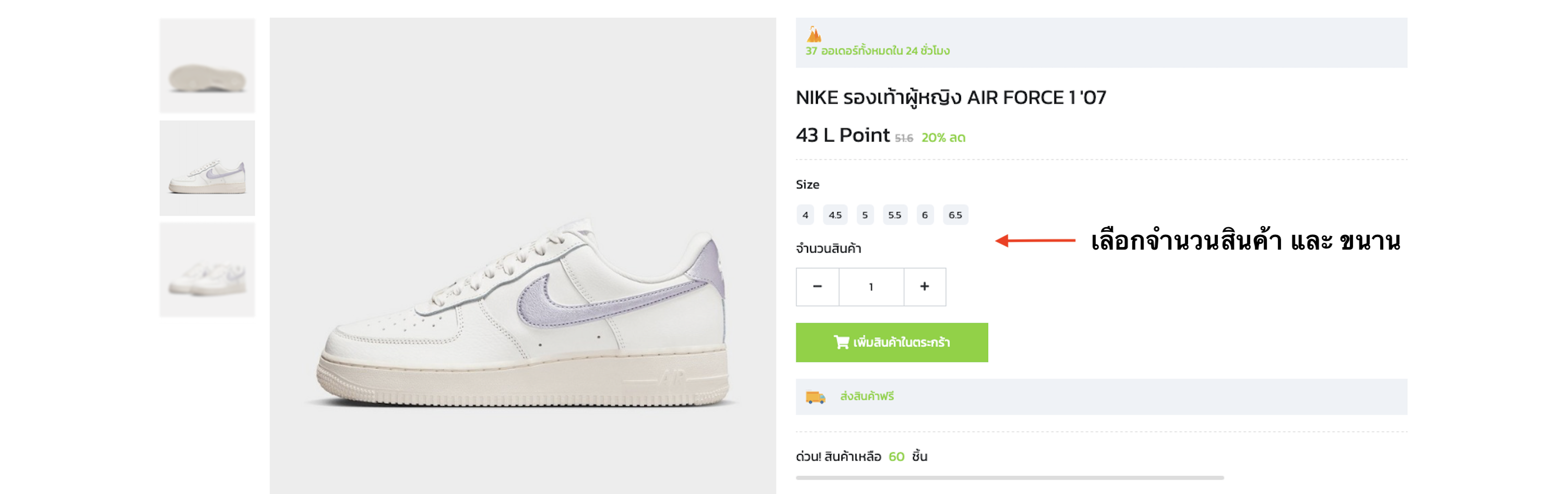 เลือกสินค้า หลังจากนั้นเลือกจำนวนสินค้า ขนาน สี ที่ต้องการ