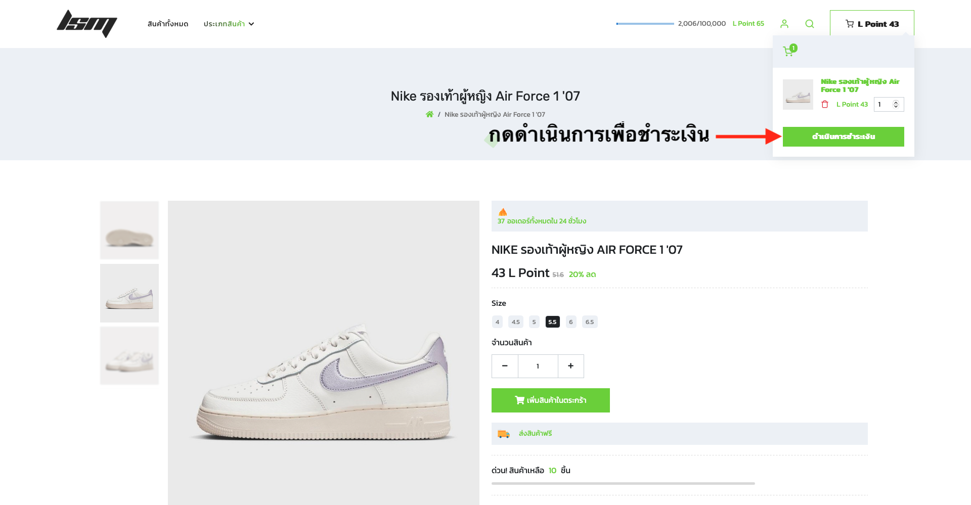 เปิดตระกร้าสินค้า และ คลิกไปที่สั่งซื้อสินค้า