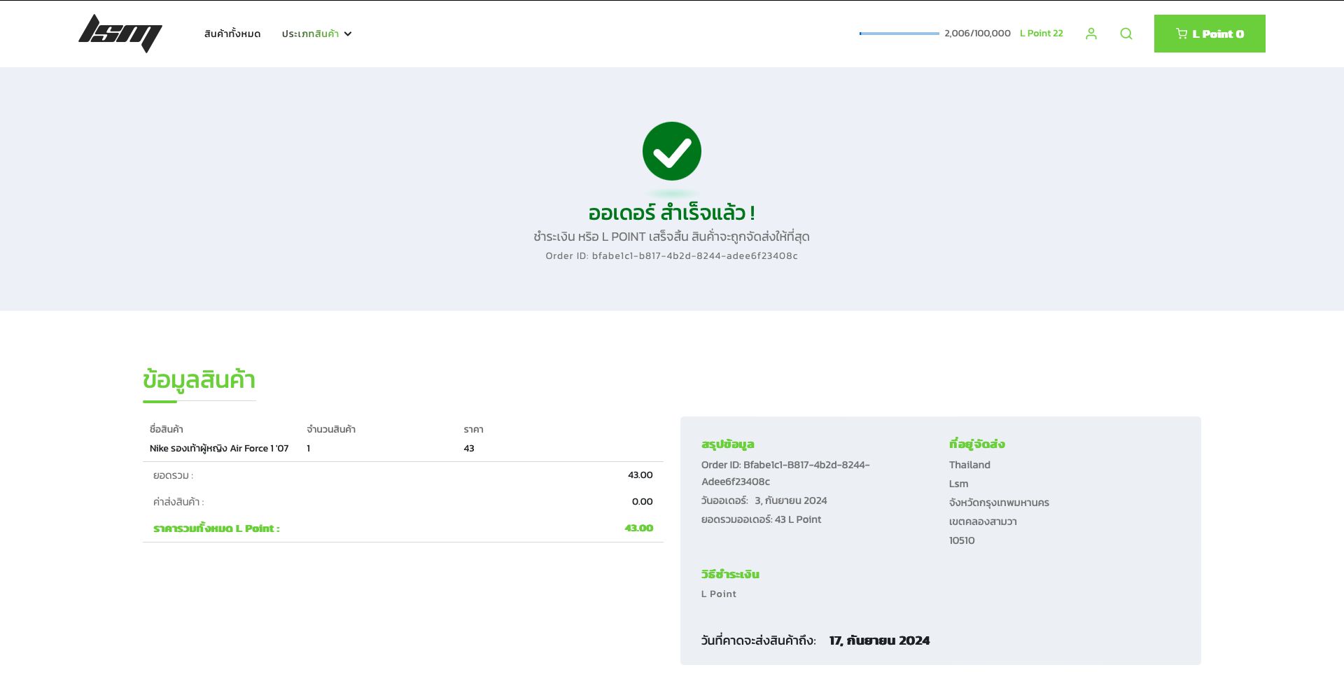คุณสามารณตรวจสอบสถานะสินค้าของคุณได้ กดไปที่ไอคอน โปรไฟล์ -> ออเดอร์ ถ้าออเดอร์สินค้าส่งถึงแล้วจะขึ้นว่า 'Arrived'